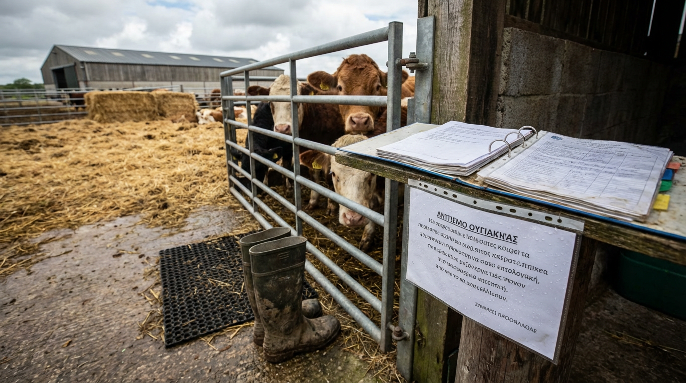 Τα πιο χαρακτηριστικά περιλαμβάνουν την εμφάνιση φυσαλίδων και ελκών στη στοματική κοιλότητα, στα χείλη, στη γλώσσα, καθώς και στα μαστάρια των ζώων. Αυτές οι αλλοιώσεις προκαλούν δυσκολία στη σίτιση, μειωμένη παραγωγή γάλακτος και γενική αδιαθεσία. Επιπλέον, τα προσβεβλημένα ζώα ενδέχεται να παρουσιάσουν πυρετό, λήθαργο, καθώς και χωλότητα εξαιτίας των εξελκώσεων στα πόδια. Είναι σημαντικό οι κτηνοτρόφοι να είναι σε επαγρύπνηση και να επικοινωνούν άμεσα με την κτηνιατρική υπηρεσία εάν παρατηρήσουν οποιοδήποτε από αυτά τα σημάδια, καθώς η έγκαιρη διάγνωση είναι κρίσιμη για την αποτελεσματική διαχείριση της κατάστασης και την προστασία του υπόλοιπου ζωικού κεφαλαίου. Σε συνέχεια της αναγνώρισης των συμπτωμάτων, οι κτηνοτρόφοι καλούνται να εφαρμόσουν αυστηρά μέτρα βιοασφάλειας στις εκμεταλλεύσεις τους. Αυτά περιλαμβάνουν την απολύμανση των ατομικών ενδυμάτων και υποδημάτων κατά την είσοδο και έξοδο από τις μονάδες, την αποφυγή επαφής με ξένα ζώα ή ζωοτροφές, και τον σχολαστικό καθαρισμό και απολύμανση όλων των χώρων, των σκευών και των οχημάτων που έρχονται σε επαφή με τα ζώα.