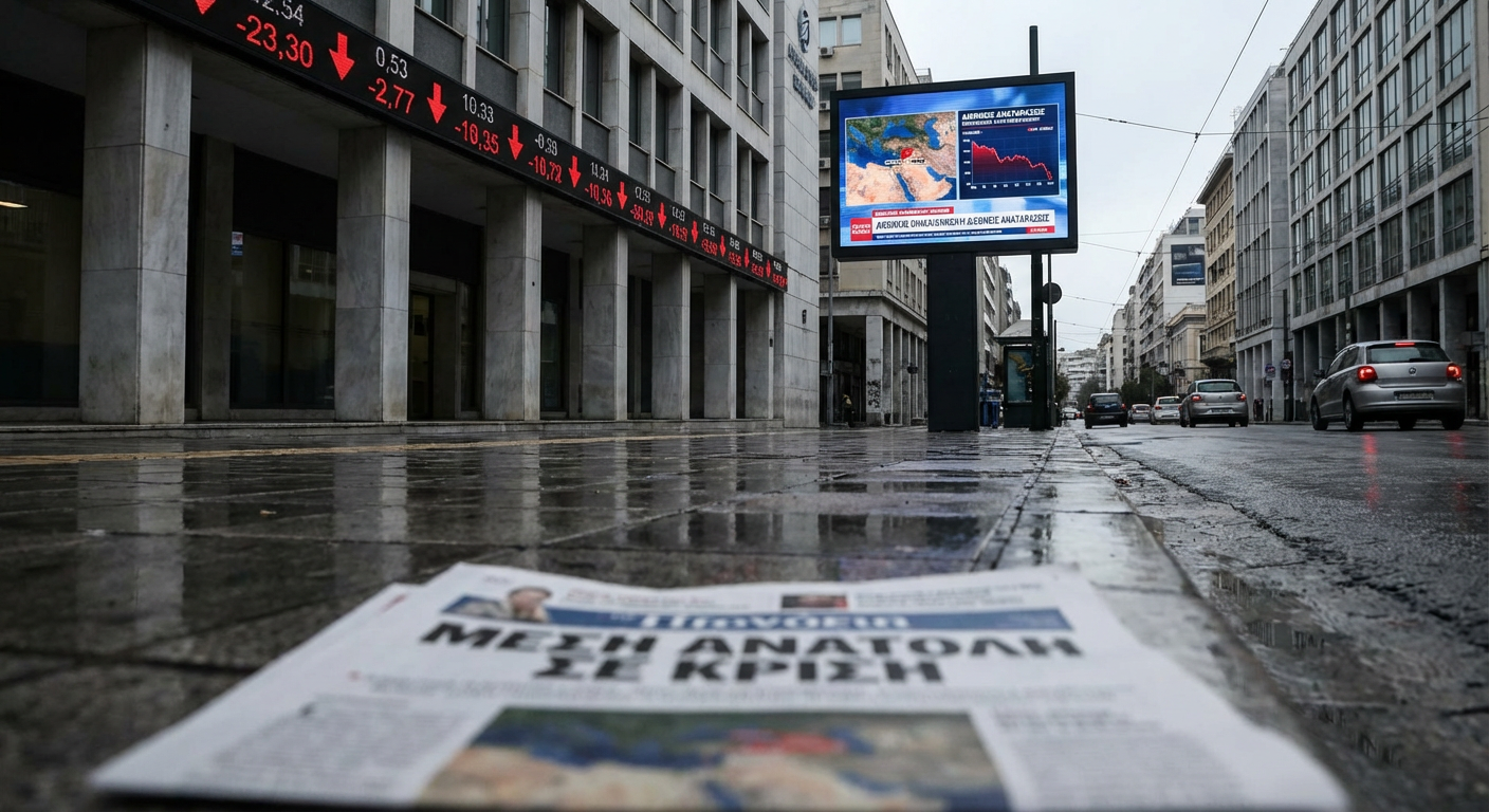 Το Χρηματιστήριο Αθηνών υφίσταται σημαντικές πιέσεις, καθιστώντας σαφή την επίδραση των διεθνών εξελίξεων στην εγχώρια αγορά. Ειδικότερα, ο γενικός δείκτης καταγράφει σημαντική υποχώρηση, αγγίζοντας το 1,46% και διαπραγματεύεται στις 2.070 μονάδες. Ιδιαίτερα ευάλωτος αποδεικνύεται ο τραπεζικός κλάδος, ο οποίος σημειώνει απώλειες της τάξεως του 2,25%, αντανακλώντας την ευρύτερη ανησυχία για την πορεία της οικονομίας και την επιδείνωση του επενδυτικού κλίματος. Η συνεχιζόμενη αβεβαιότητα, σε συνδυασμό με την αυξανόμενη ένταση στη Μέση Ανατολή, δημιουργεί ένα δυσμενές περιβάλλον για τις αγορές, αναγκάζοντας τους επενδυτές να αναπροσαρμόζουν τις στρατηγικές τους και να αναζητούν ασφαλέστερα καταφύγια για τα κεφάλαιά τους. Η γεωπολιτική ένταση που επικρατεί στη Μέση Ανατολή αποτελεί έναν καίριο παράγοντα που επηρεάζει αρνητικά την παγκόσμια οικονομία και, κατ’ επέκταση, τις χρηματοοικονομικές αγορές.